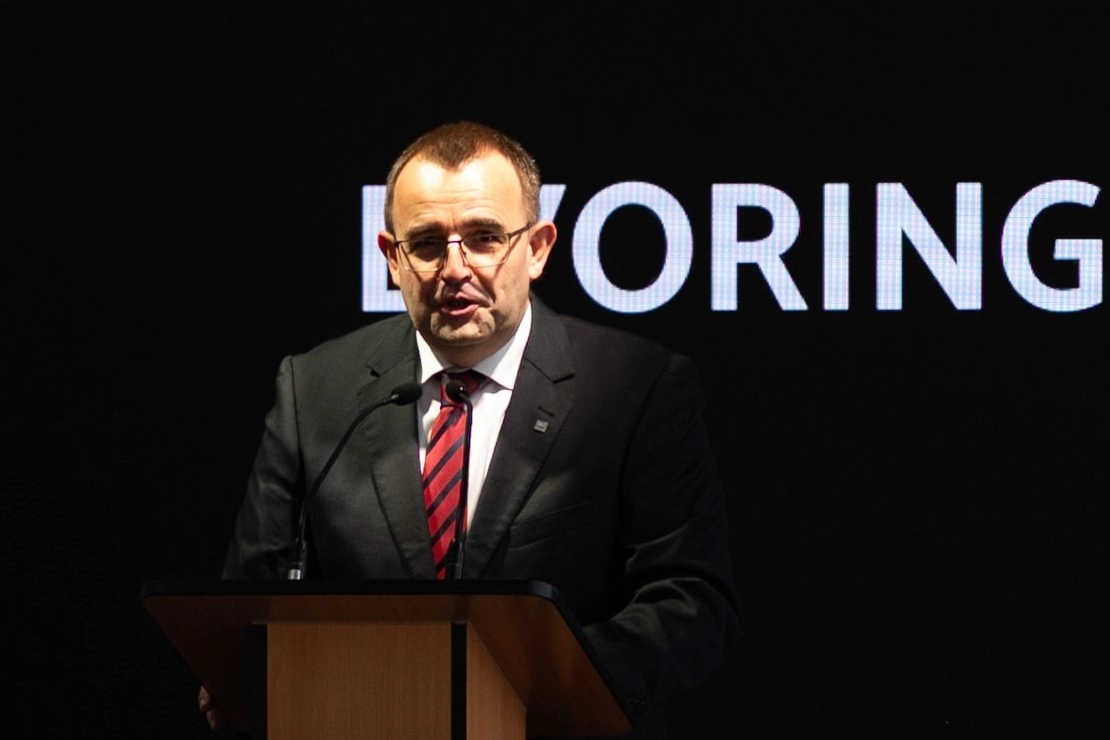 EVORING新厂房基建承包商负责人Mr.Knab在致辞中向乐鱼(中国)传动的信任与支持表示感谢。他表示,项目建设启动以来,正是得益于各方的始终信任与精诚合作,才取得了“三个超越”项目成果——工期进度超越预期、质量标准超越欧盟规范、团队协作超越国界限制。